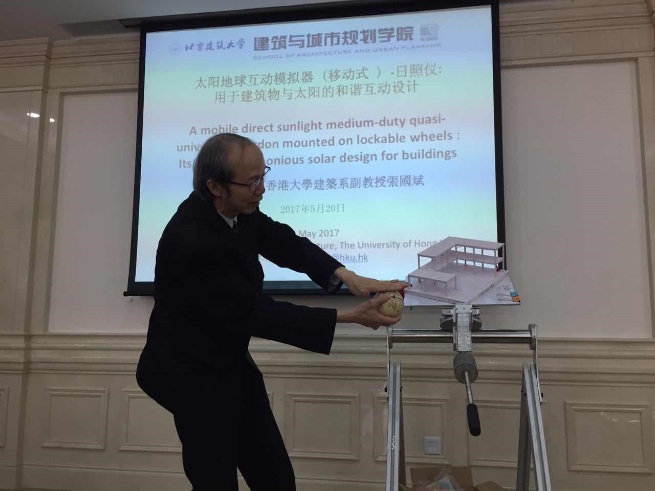 田林书记在致辞中首先对张国斌老师的来访表示热烈欢迎,并对张国斌老师捐赠给斗地主游戏 日晷仪作为教学科研使用表示感谢。田林书记介绍了北京建筑大学及未来城市设计高精尖中心的发展概况。并预祝此次张国斌老师与建筑学院共同组织的的建筑与城市日照设计联合教学工作营圆满成功。田林教授提到,以此次联合教学作为开端,双方将继续开展深入合作,完善长期教学合作机制并共同开展科研课题研究。