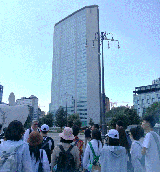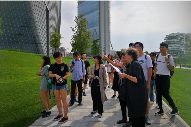 教授带领学生参观米兰三塔城市设计案例