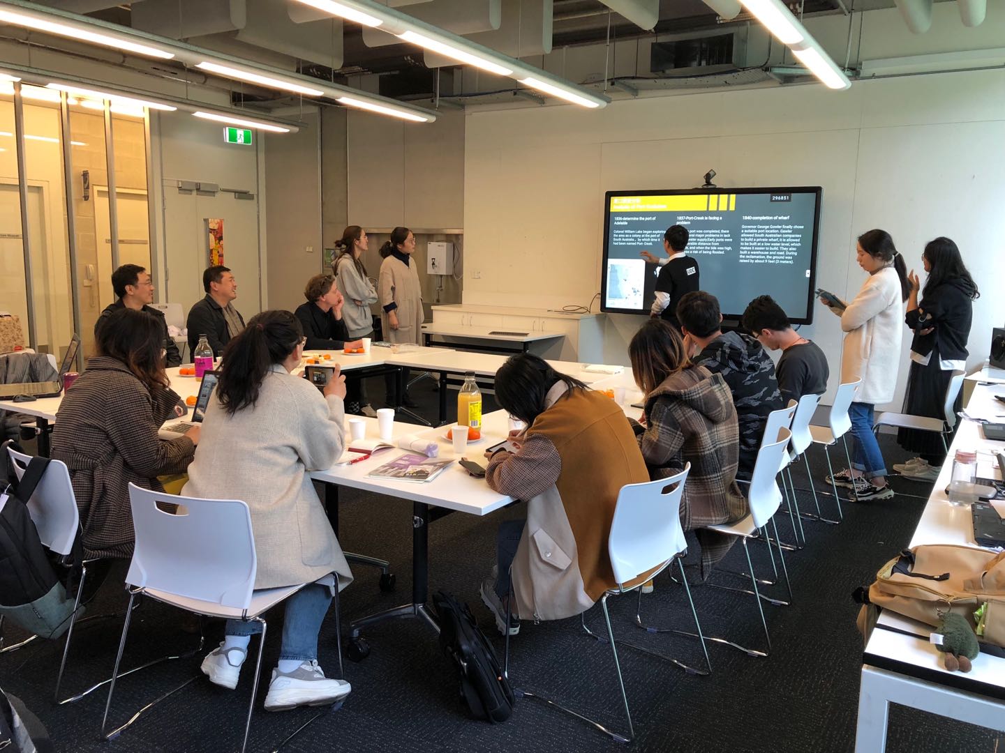在工作营期间,南澳大学的教授们为同学们提供了详细的资料,并全程陪同参观和调研。本次工作营的设计任务以阿德莱德港口、梅高和霍格大厦、前证券交易所为研究对象,对阿德莱德市区进行多轮调研,并对一些优秀的历史建筑再利用案例进行学习和分析,与项目设计师现场研讨。学生们在各位教师的指导下,经过实地调研、资料分析、分组讨论和设计,最终形成了具有创新性的港口规划方案和历史建筑适应性再利用的设计方案,并整理汇集为中期成果。各位指导教师参加了工作营中期成果的阶段汇报评图工作,对每一位学生的成果进行了点评。