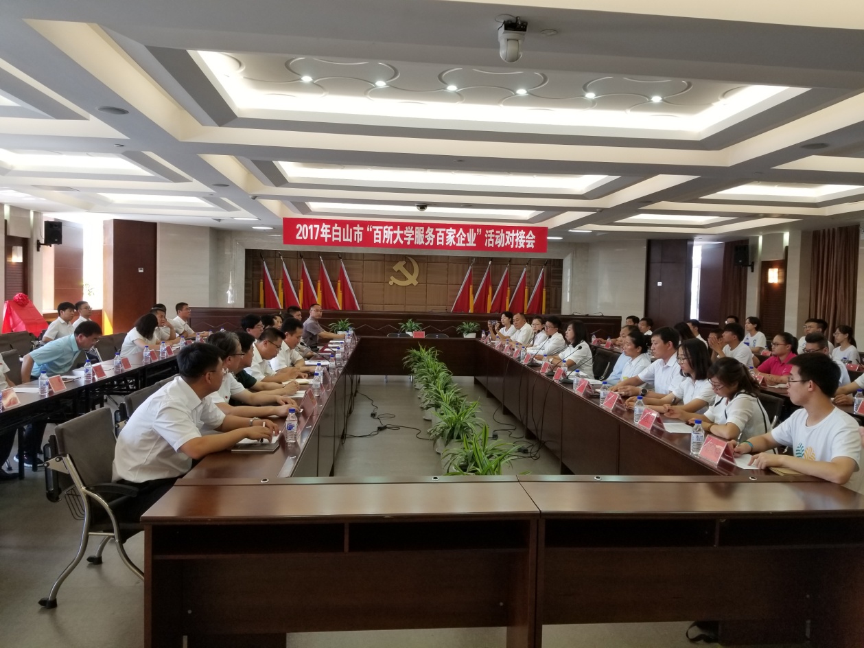 白山市市委为进一步深化“印象长白山,筑梦十三五”百所高校进白山大学生暑期社会实践活动的展开,组织了“百所大学服务百家企业”活动对接会,2017年7月18日,斗地主游戏 应邀参与此次活动,与各高校实践团队分享在白山开展暑期社会实践活动的心得体会,了解白山各企业的人才需求情况,搭建高校和企业沟通的平台,促进校企合作。