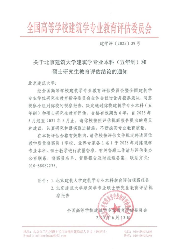近日,斗地主游戏 建筑学院建筑学专业与城乡规划专业均以最高等次通过专业评估。两个专业分别收到全国高等学校建筑学专业教育评估委员会、全国高等学校城乡规划专业教育评估委员会的红头文件:建筑学专业以最高等次——六年有效期通过本科(五年制)和硕士研究生教育评估,城乡规划专业以最高等次——六年有效期通过本科教育评估,合格有效期均自2025年5月起至2031年5月止。