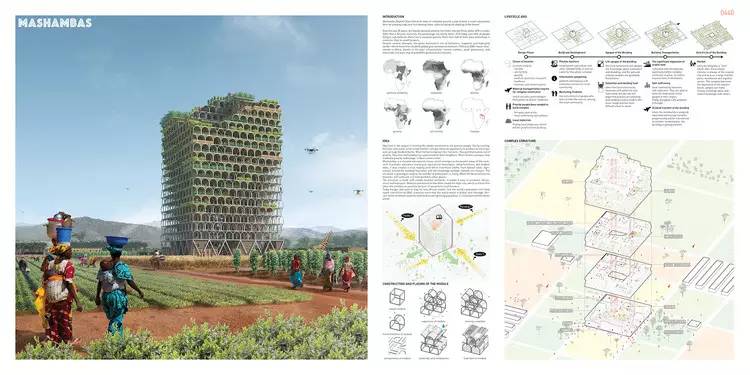 今年评委从444个报名作品中,最后选出了前三名以及22个荣誉提名。本年度的获奖作品其中就有为撒哈拉以南非洲设计的模块教育中心及市场,山中垂直堆叠的工厂、娱乐空间及村庄,甚至还有巨杉之中的摩天楼。