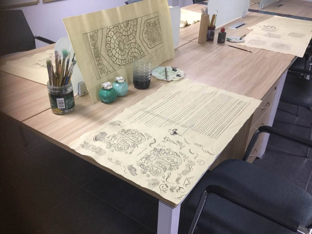 尽管遍经风雨,他依然记得团队成立之初的满腔热忱。那时他一直在为老师当助教,了解到有创空间这样一个平台。“我本身是非常喜欢古建彩画的,文化部和设计周的那些设计总监也说,为什么不把古建元素和现代的文创产品结合起来呢?时下非常火的故宫文创做得不就很好。”他一直就有创业的想法,受此启发后和几位同学一拍即合,古建筑彩画团队就这样成立了。