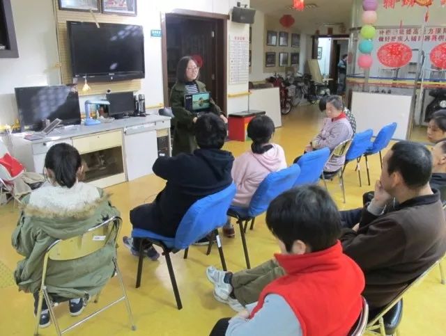 值得一提的是,因为温馨家园的放映设施坏了,每一次的宣讲都是我们的同学站在前边自己端着电脑,来回走动,给大家展示图片。