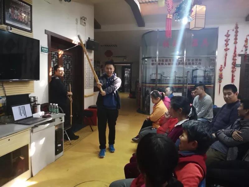 古建181班的陈鸿宇、杨宇轩同学顺利地到达护国寺宣讲地点,他们绘声绘色地讲起武士刀和剑道,残疾人朋友虽然对这两方面没有什么了解,但可以看得出来,他们对这个主题很感兴趣。在场的残疾人朋友们无不被两位同学生动形象的讲解所惊艳,起了大家的共鸣,纷纷加入讨论之中,看的出来大家都很开心。