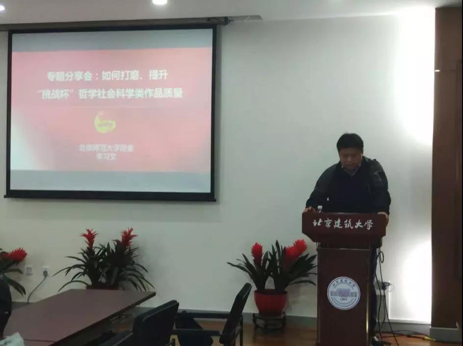 为了使同学们更加清楚挑战杯的比赛事宜,更有针对性的完善自己的作品。在校团委的支持下,4月8日中午,北京师范大学团委助理、第九届“挑战杯”首都赛(2017年)组委会副秘书长李习文老师来到斗地主游戏 西城校区,举办专题培训,为斗地主游戏 参赛的本、硕学生团队展开专题指导。