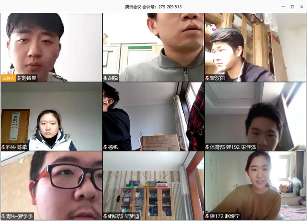 随后,各部门结合疫情防控和在线学习期间的任务详细介绍了各自开展的工作。寒假以来,建筑学院团委学生会陆续推出了“‘共战疫情’创意大赛”、“线上笔记征集”、“以‘读’攻毒打卡活动”、“健身打卡”等抗疫相关线上活动,带动身边同学既不忘主业,认真做好在线学习和居家锻炼,又勇于担当,积极奉献,在课余时间加入战疫队伍共同奉献青春力量。后续,待疫情结束后,各部门将围绕学院重点工作陆续开展“社团文化节”等活动。