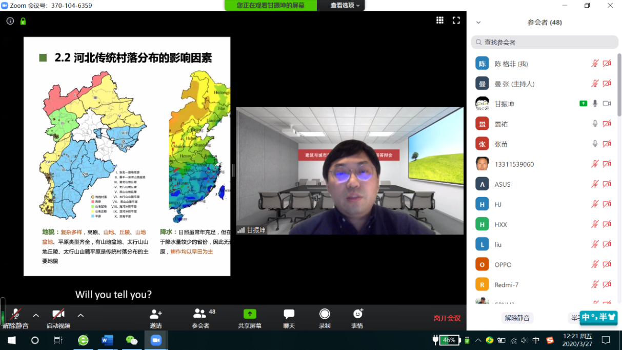 甘振坤、单超等4名博士研究生分别在家中以在线视频方式汇报了学位论文进展情况,7位专家逐一进行进行点评并提出问题。经专家组认真讨论后,对研究生学位论文下一步的改进工作提出了建议和意见。答辩专家组还表示,虽然在特殊时期,博士预答辩方式进行了创新式调整,由于准备充分、流程严格,能达到与现场答辩同样的效果。