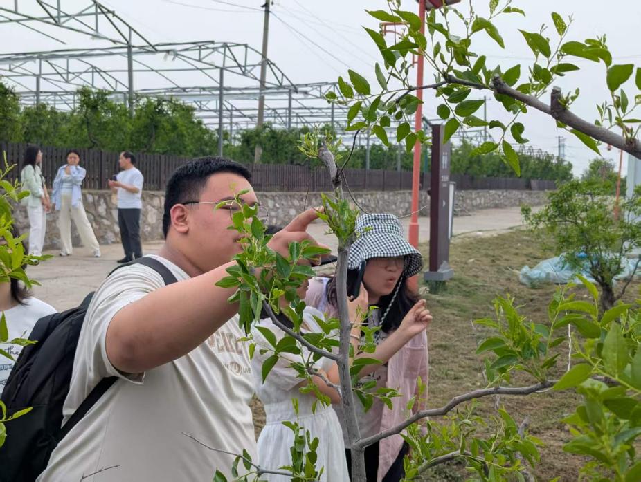 随后实践团队前往北宫镇中华名枣园。这片占地千亩的枣园不仅是北京重要的农业示范基地,更是北京建筑大学“校地合作”的鲜活案例。园区内,学生们观摩学习了枣树的种植和养护流程,亲自上手实践,寓教于乐,丰富和拓展了同学们的视野,坚定了同学们为实践乡村振兴的的决心和动力。