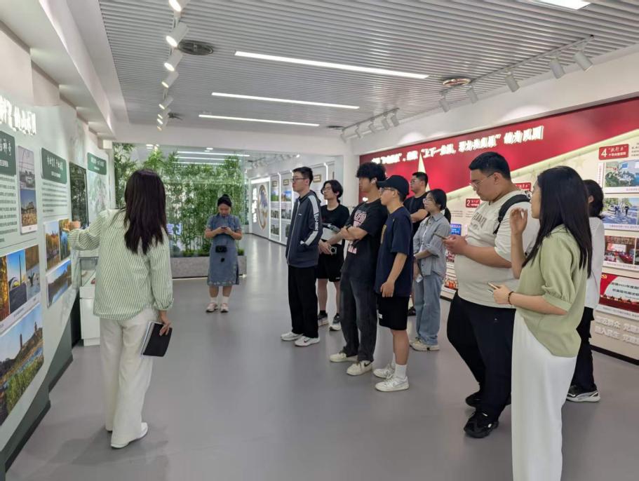学生们首先参观了北宫镇“党建引领乡村振兴”展厅。北宫镇工作人员生动展示了北宫镇从传统农庄向“休闲-农业-文化”综合体转型的历程。同学们在展厅中系统学习了北宫镇在党的领导下,从产业振兴、人才振兴、文化振兴、生态振兴、组织振兴五个方面,依托北宫丰富的生态资源,实现跨越式发展,打造乡村振兴新支点。