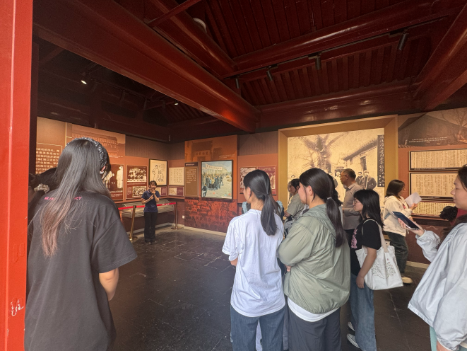 随后,同学们前往慈悲庵。慈悲庵始建于元代,距今已有700多年历史,是中国近代革命活动的重要遗址。“慈悲庵看似是宗教场所,实则是革命的‘中转站’。”工作人员的讲解如拨云见日:“这里既是李大钊组织马克思主义研究会的‘秘密课堂’,也是周恩来南下途中联络同志的‘交通站’——革命者借古刹隐蔽性,在茶香中谋划救国大计。”这里见证了中国近代革命的重要历程,成为马克思主义者与进步青年的重要联络点。