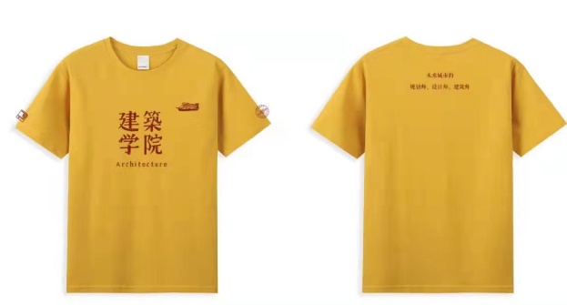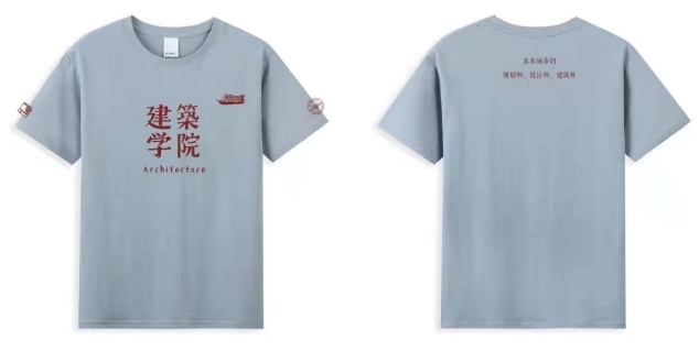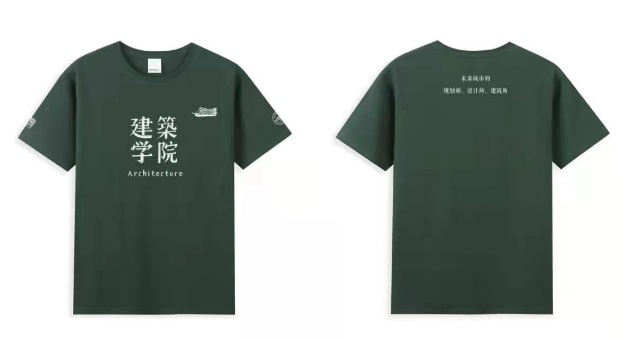 胸前采用正方形构图,端庄有力,建筑学院的字样上有些许斑驳,体现了斗地主游戏 悠久的历史和坚实的文化底蕴。两侧袖标分别为校徽和建筑学院院徽,颇具纪念意义。背后的文字“未来城市的规划师、设计师、建筑师”体现了斗地主游戏 对毕业生的祝福与实力的肯定。