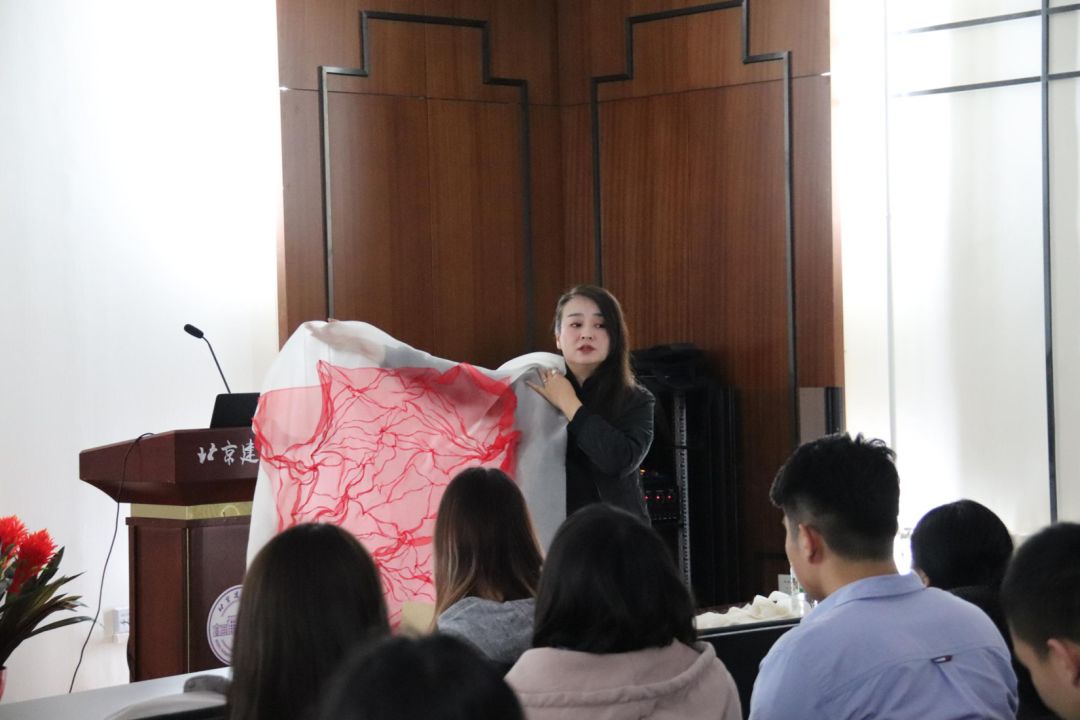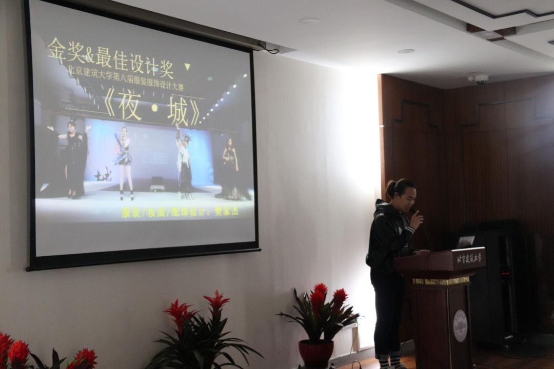 本次分享会邀请了北方工业大学的张杞峰老师、第八届北京建筑大学服装服饰大赛金奖及最佳设计奖获得者——土165班樊家杰同学、往届服装服饰大赛的优秀模特——建实151班的魏安娜同学,给参赛者分享服装设计和制作的经验。