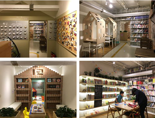 安苑里地瓜社区,它集理发店、图书馆、儿童游乐区、3D打印室、咖啡厅、健身区、会议室以及社交活动场所于一身。从入口处很小的招牌和暖黄色的VI,引导着人们进入一个奇妙的地下空间,到接待台处的互联网时代下的UGC和共享交换阅读图书馆,再到墙面上的地瓜墙纸,天花上的管道造型,无不体现着设计者的共享理念。