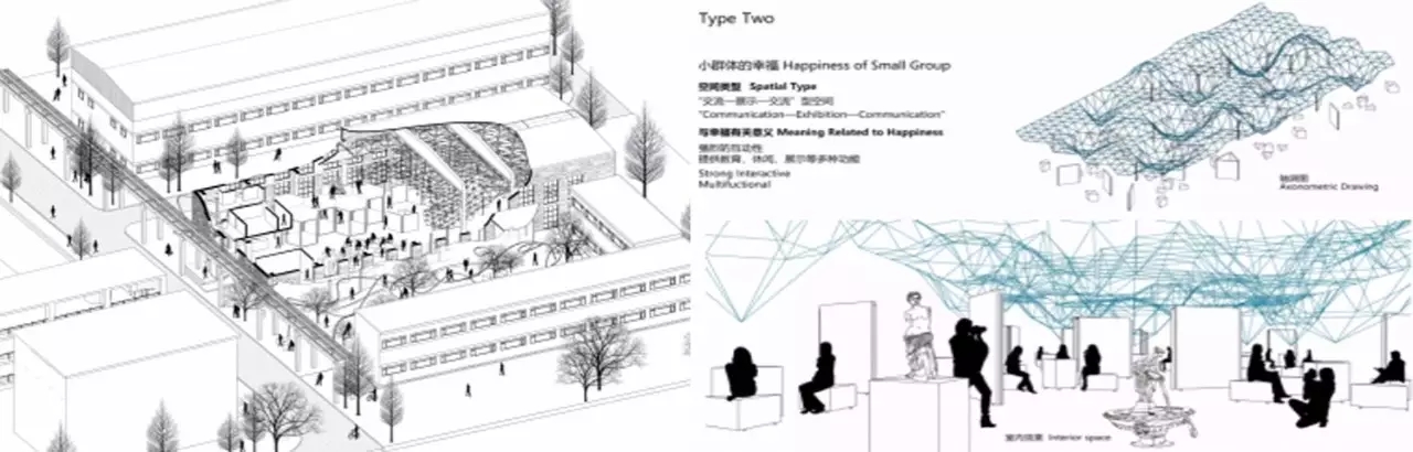 与此同时,建筑学院研究生柴纪阳设计团队的“匣中悬圃”、刘永康设计团队的“城市的幸福”、倪晨辉设计团队的“无界幸福”、王海月设计团队的“画?卷”、以及高朋辉设计团队的“幸福?盒子”等5个设计作品荣获专业组入围奖。房银华的设计作品“花样?重生”荣获创意组入围奖。