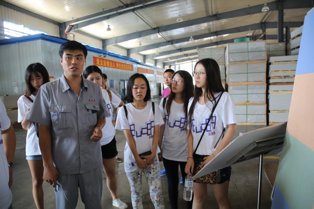 为与实践团队专业性质相呼应,于2017年7月19日,北京建筑大学实践团队一行来到东北亚新型建筑材料有限公司,参观紫砂陶酒壶产业链以及硅藻泥板产业链,以及产品推广状况。