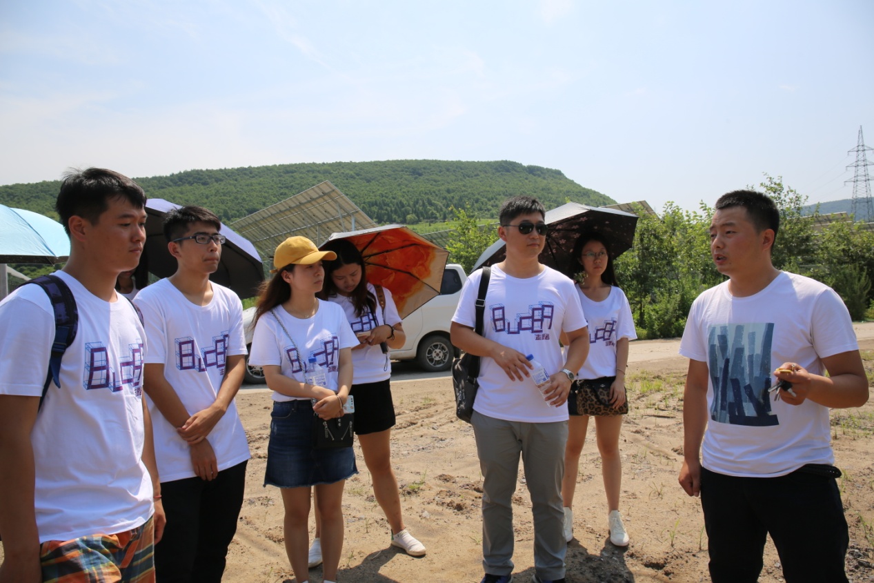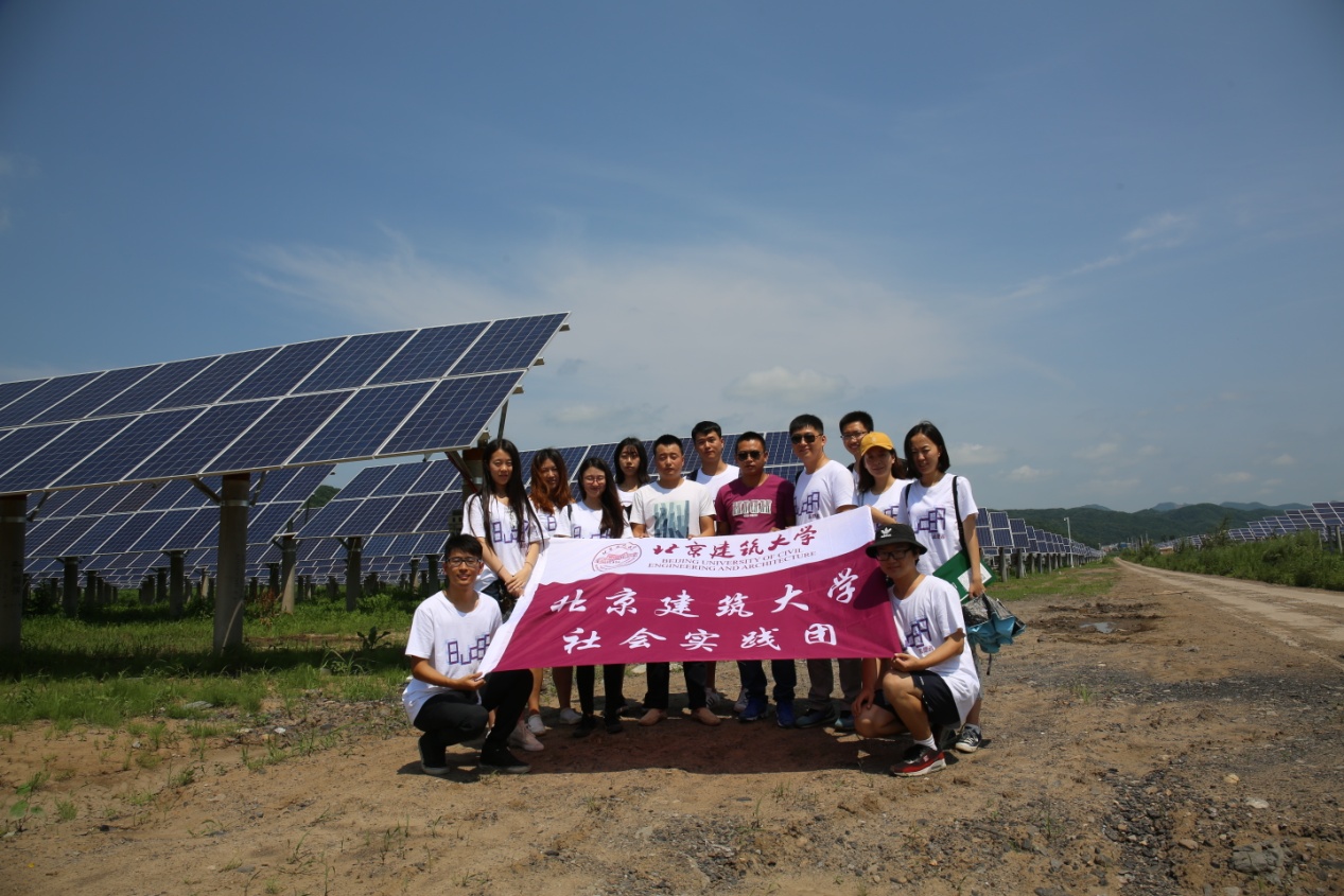 北京建筑大学实践团队来到白山市最大的太阳能光伏发电站,在行车途中皆可以看到整齐排列的太阳能电池板在太阳底下熠熠生辉,象征着新农村建设的曙光。