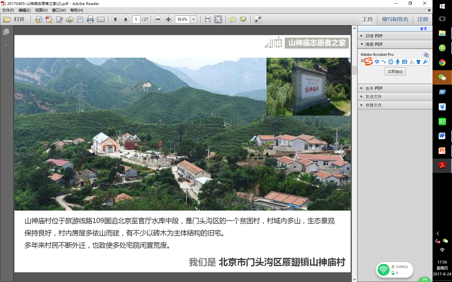 为了更好的聚焦农村建设,引导低收入村提升文化内涵,让学生能够发挥专业所长,研究当地特色文化。2017年7月,建筑学院联合校党委宣传部,赴延庆区井庄镇开展了为期两周的“秀美乡村,成风化人”社会实践活动。团队成员走进基层,走进群众,先后走访了胡家营村、柳沟村、王仲营村、艾官营村等多个传统村落,结合当地民俗旅游发展状况,在村内进行了走访调研,了解村庄的历史故事和发展状况以及文化和设施建设,并通过宣讲的形式向村内居民进行反馈。本次调研活动与延庆区委宣传部构建“大家做宣传、对大家做宣传、把宣传工作做大”的大宣传格局相呼应,利用文化与创新思维结合的有效方式,传播村落优秀文化,探索弘扬社会主义核心价值观。