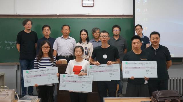 接下来,由建筑学九零级校友代表窦志、赵敏代表九零级建筑学专业全体校友为学院捐赠奖学金,并与院长张大玉、课程教师为获奖学生,来组建131王晴、建131刘久源、建132穆帅文与建132李啟潍的四位同学颁奖,合影留恋。