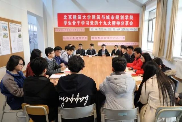 12月8日下午,在党委宣传部的指导下,建筑学院在西城校区举办学生骨干学习党的十九大精神分享会。建筑学院学生骨干30余人结合党的十九大报告中有关“坚定文化自信”和“建设美丽中国”的重要论述,以“弘扬优秀建筑文化,做古都风貌保护的践行者”为主题展开学习交流,建筑学院青年理论导师丁光辉参加分享并现场点评。