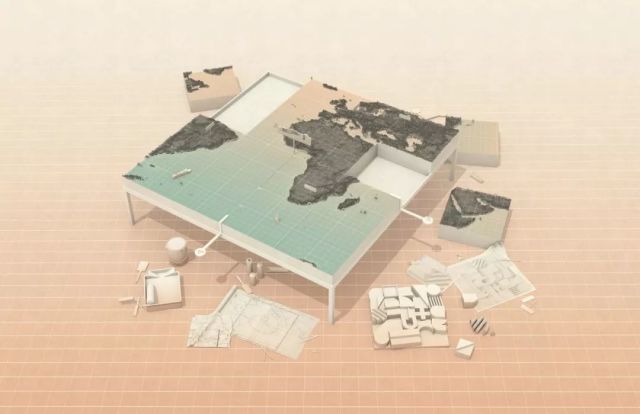 项目描述了在全球背景下,不能自我供给并依靠巨型基础设施进行生存权交易的生态,揭示了资本主义活动下的地理景观中存在的矛盾和紧迫感,试图将地缘政治力量、技术和不被束缚的野心结合造出一个建筑,借此对全球化提出质疑。