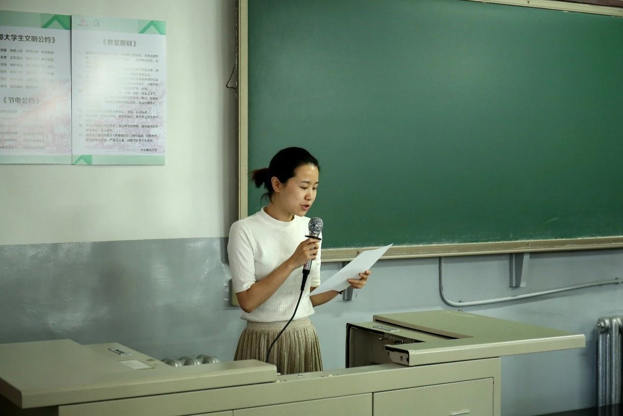首先,由秘书长张亚然主持此次会议并宣布会议正式开始,介绍参加此次大会的老师有建筑学院团委书记黄庭晚老师及建筑学院辅导员孙萌老师。