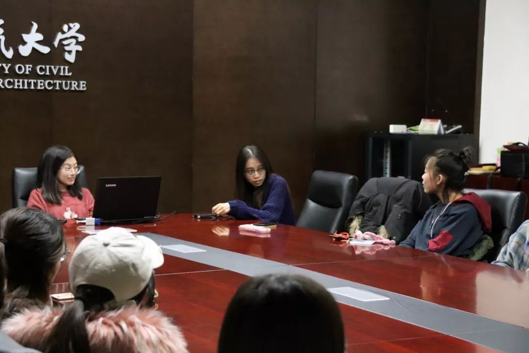 在经验分享环节,两位同学依次讲述了自己参与竞赛的经历和经验。同时她们提到了如何适应设计课的一些看法,为在场的18级同学提供了很好的学习经验。
