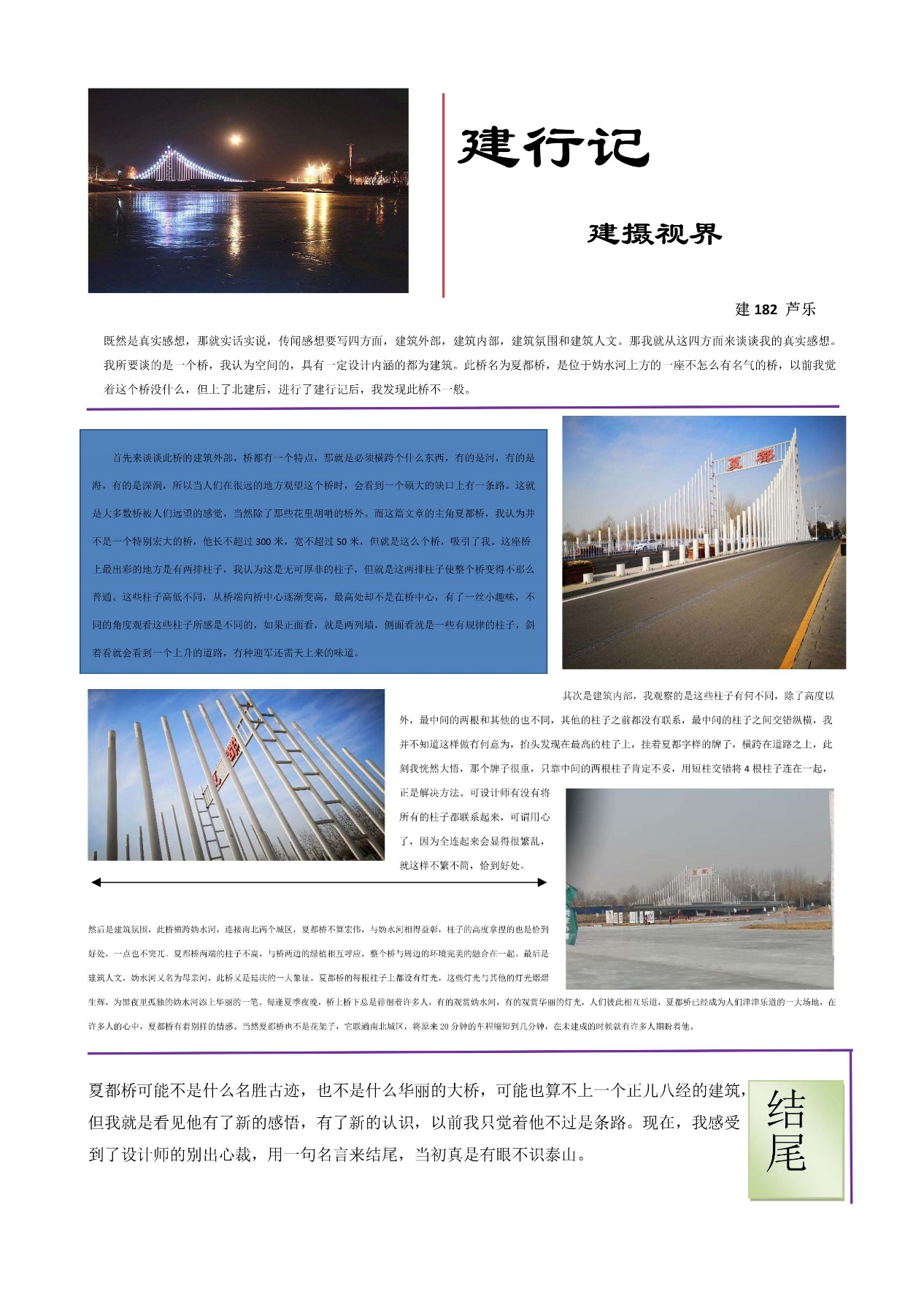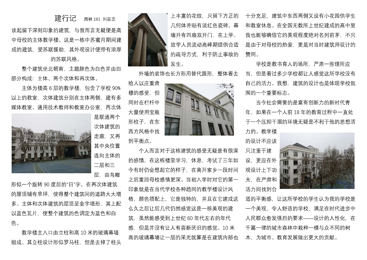 近期,团委学生会将选取“建行记”提前投稿的作品中,文字或排版较好的进行定期推送,供大家参考或批评。让我们跟随建院学子的“建行记”,共飨建筑文化之魅力。