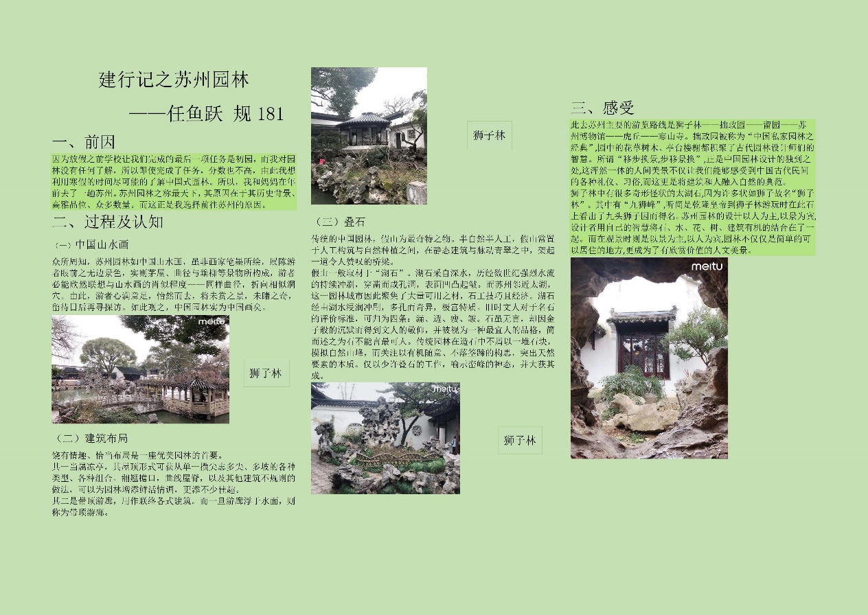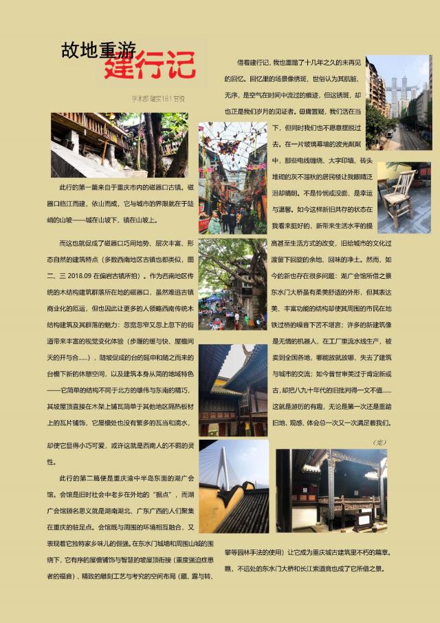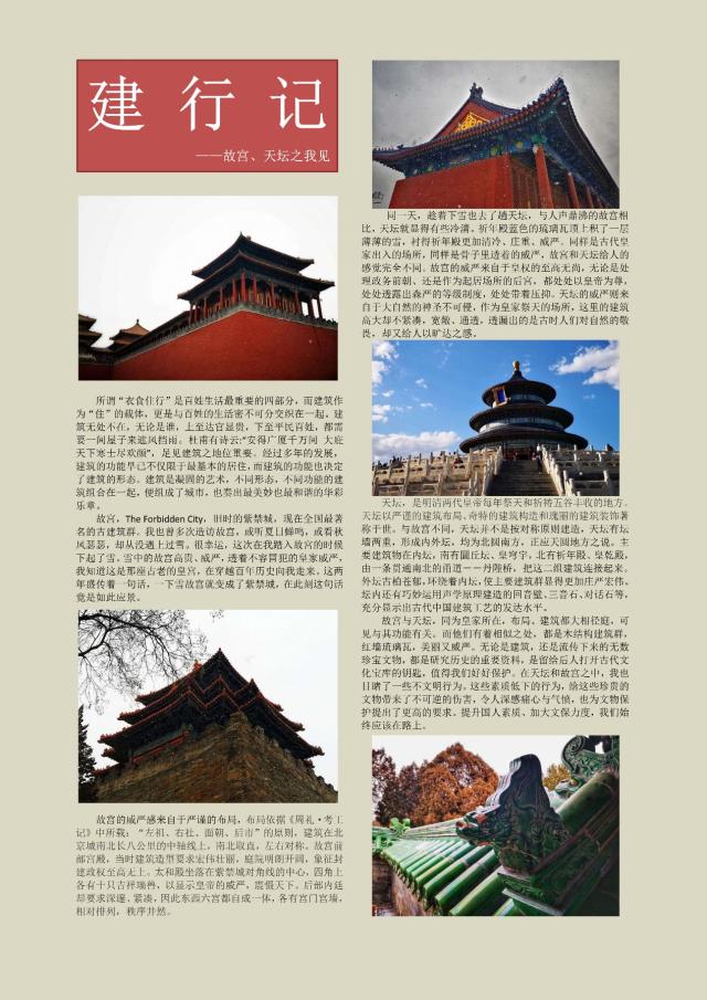 近期,团委学生会将选取“建行记”提前投稿的作品中,文字或排版较好的进行定期推送,供大家参考或批评。让我们跟随建院学子的“建行记”,共飨建筑文化之魅力。