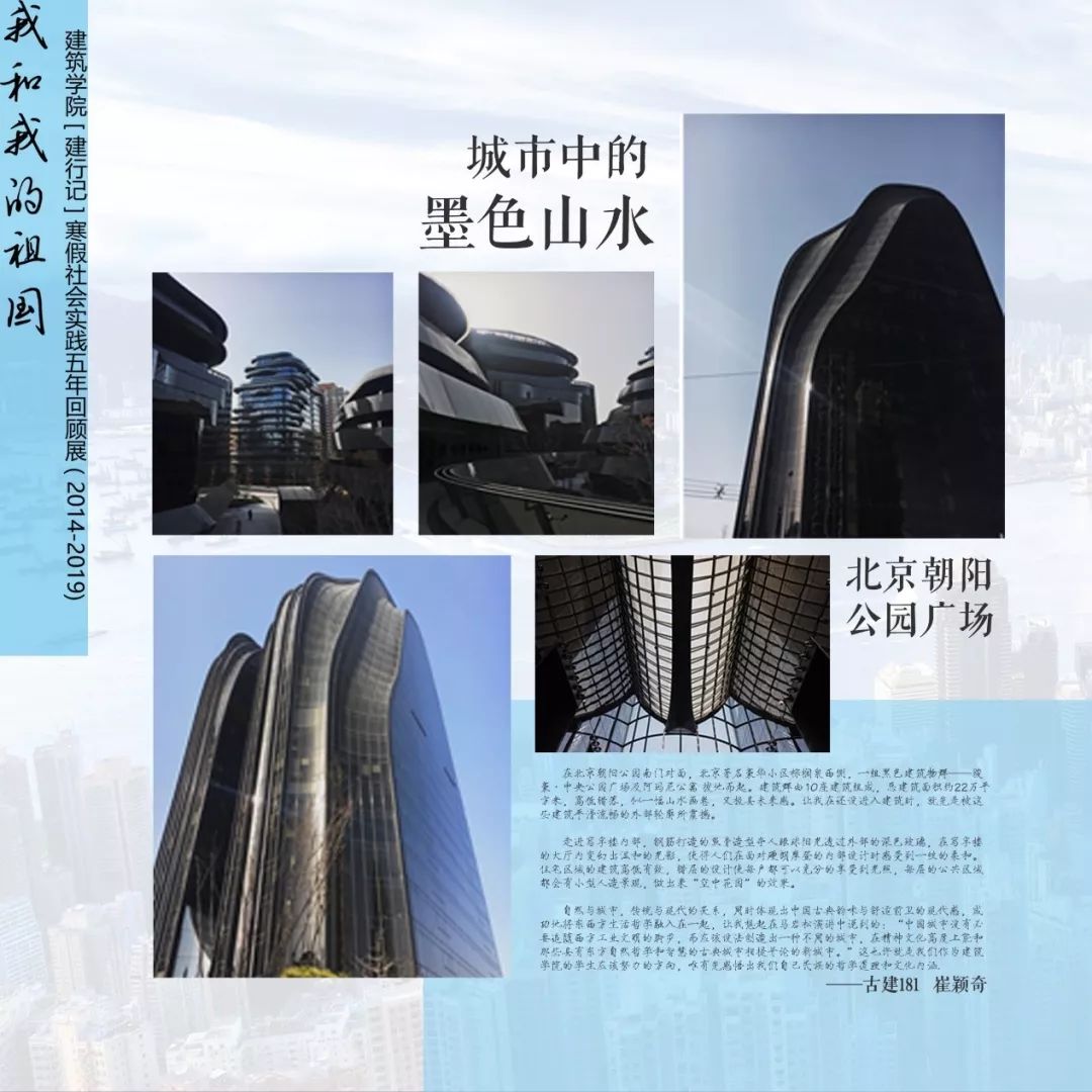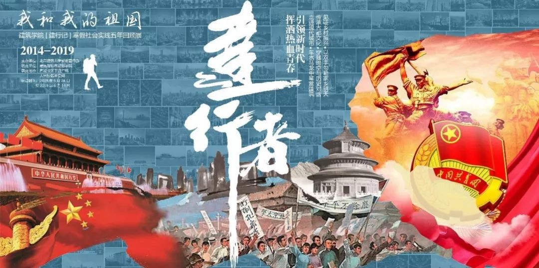 立足新时代、开启新征程,在贯彻学习党的十九大精神及致敬五四一百周年、建国七十周年的背景下,建筑学院学生围绕“我和我的祖国:建行者——挥洒热血青春,引领新时代” 主题,总结2014-2019年五年建行记成果,举办【建行记】寒假社会实践活动五年成果展。