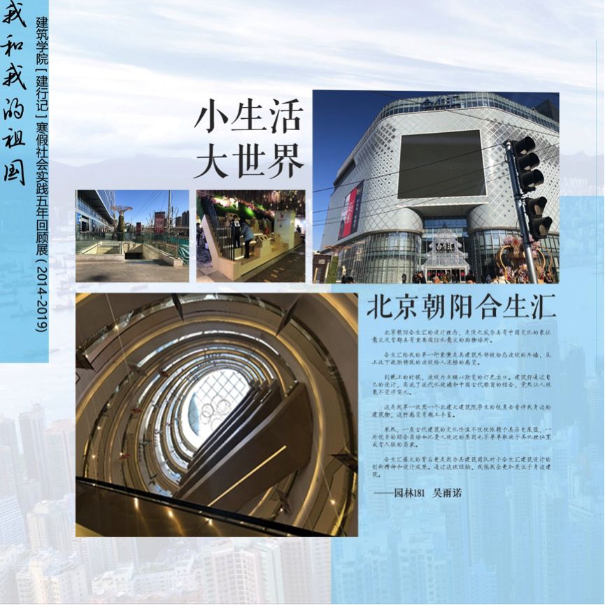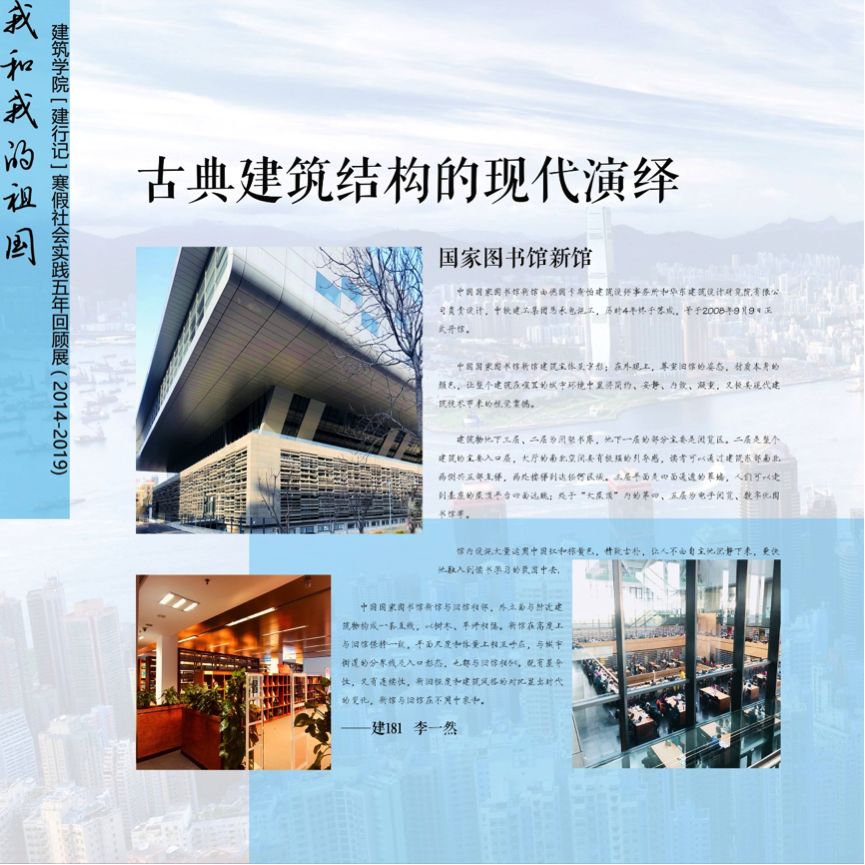 立足新时代、开启新征程,在贯彻学习党的十九大精神及致敬五四一百周年、建国七十周年的背景下,建筑学院学生围绕“我和我的祖国:建行者——挥洒热血青春,引领新时代” 主题,总结2014-2019年五年建行记成果,举办【建行记】寒假社会实践活动五年成果展。