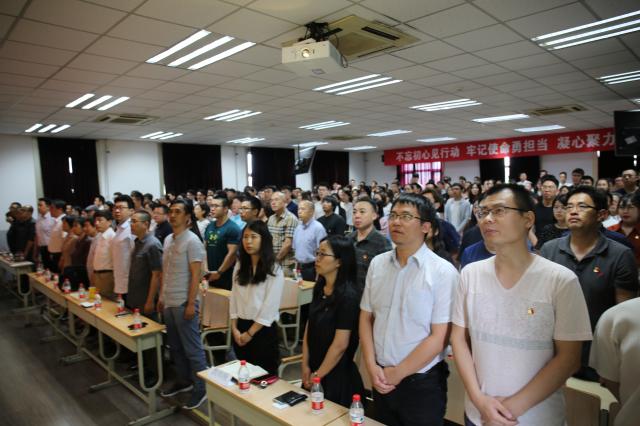 人才培养是大学的基本使命,立德树人是大学的根本使命。全体师生党员应牢记使命,乘势而上勇担当,要做到“三力合一”,即干部要有能力,教师要有实力,学生要有活力。干部要提高觉悟,想干事;要锤炼本领,能干事;要砥砺品行,干成事;要加强修养,不出事。教师应努力培养高尚的师德师风,彰显教师的品格;应努力增强教师教书育人的责任感和使命感,彰显教师的职责;应努力提高教师的文化知识水平,彰显教师的能力。同学们要勇做奋进者,在新时代的广阔舞台上施展抱负、竞展风采;要勇做搏击者,在具有许多新的历史特点的伟大斗争中担当在先、奉献在前;要勇做坚定者,坚持用习近平新时代中国特色社会主义思想武装头脑、指导行动。