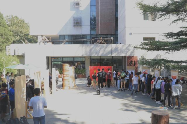 作品完成之后,各班同学积极为作品进行宣传,同时现场的观众们向喜欢的作品投票,现场气氛非常热烈。