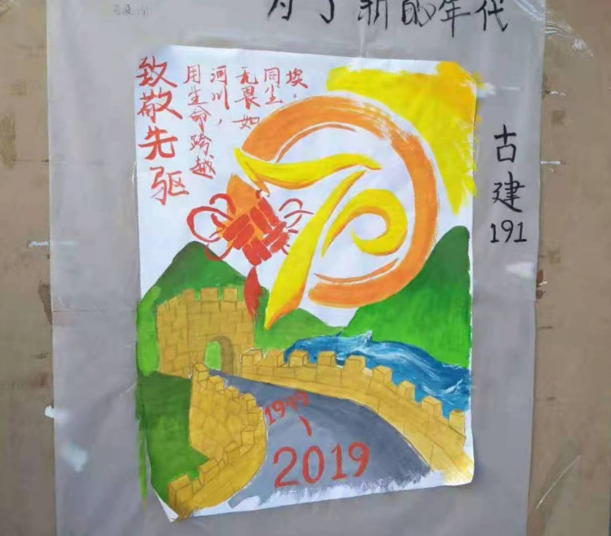 此次活动集结了2019届全体同学。在120分钟的有限时间内,同学们以班级为单位,用精妙的笔触和绚丽的色彩,表达出了对祖国的无限热爱。