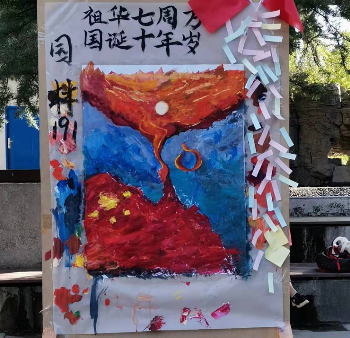 本次涂鸦大赛丰富了我们的校园文化生活,加强了校园文化建设,促进了新生班级内部团结,更重要的是,通过这一幅幅绚丽的画作,我们表达出了对祖国母亲的热爱。在此,祝祖国七十华诞生日快乐!