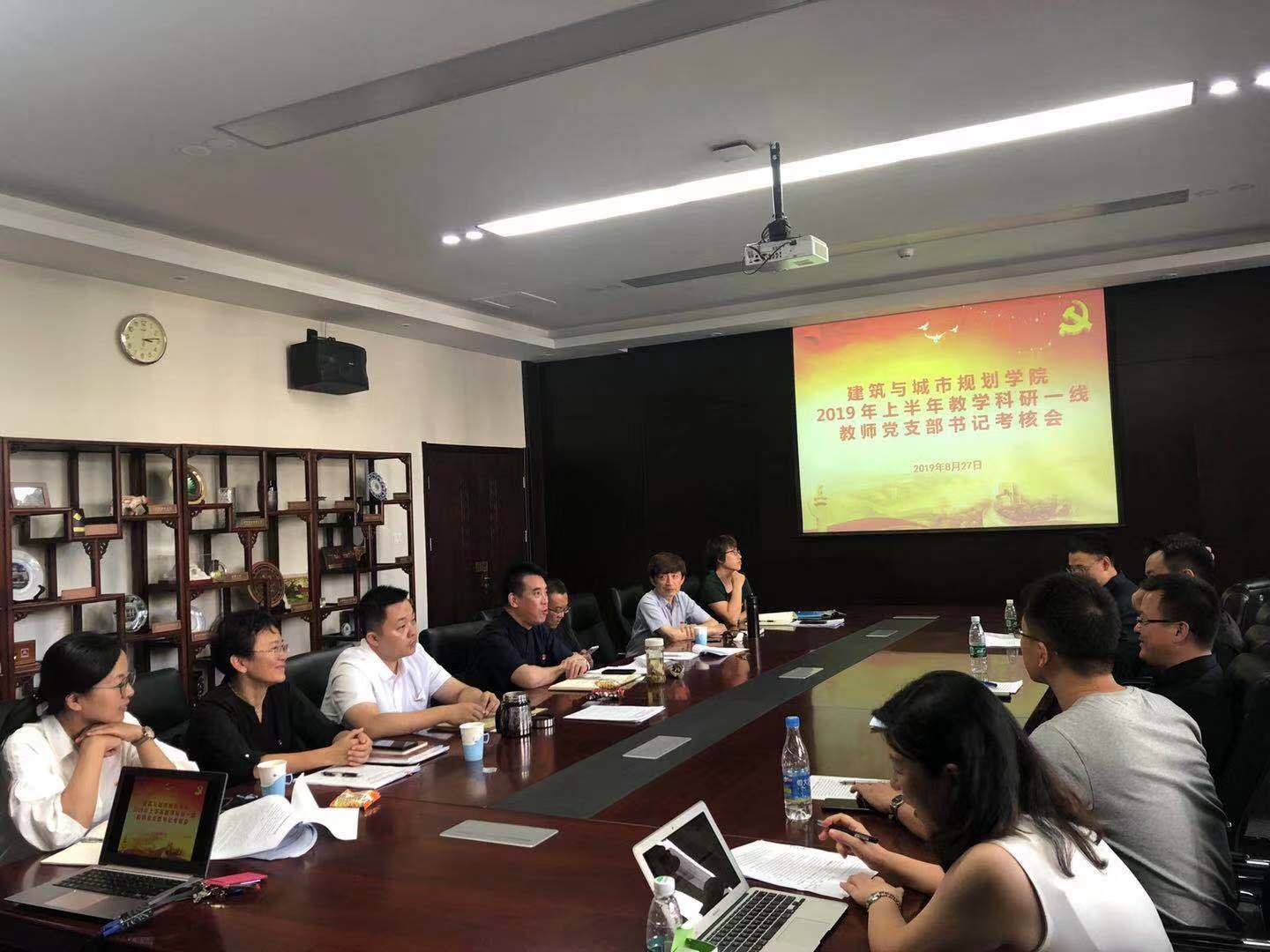 本次建筑学院教学科研一线教师党支部书记考核会围绕支部党的建设,党员党性修养,结合日常支部工作进行全面总结。各教职工党支部书记对日后支部的发展和党的建设思路明确了方向,将以更加行之有效的工作来开创学院党的建设的新局面,努力的推动学院事业的发展。
