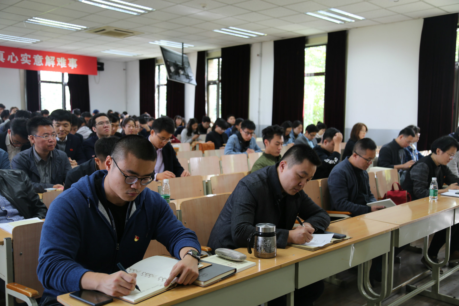 在“真心实意解难事”方面,何立新同志提出“解难事”的价值取向不仅仅指解决师生工作、生活中碰到的困难,更是指破解学校和学院事业发展过程中碰到的各种问题和挑战。为了实现“实现国内一流、国际知名、具有鲜明建筑特色的高水平、开放式、创新型大学的发展目标”这一目标,就要做到总书记提的立德树人。每位教育工作者都需要付出巨大的努力,要做到“三力合一”,即第一,“干部要有魄力”,各级干部都要提高觉悟,想干事;锤炼本领,能干事;砥砺品行,干成事;加强修养,不出事;第二“教师要有实力”,要求每位教师做到努力培养高尚的师德师风,彰显教师的品格;努力增强教书育人的责任感和使命感,彰显教师的职责;努力提高文化知识水平,彰显教师的能力;第三“学生要有活力”,要千方百计的激发青年学生的活力,抓好这一时期青年的价值观培养,鼓励他们坚定理想信念,坚毅砥砺前行,为实现中华民族伟大复兴的中国梦、实现人民对美好生活的向往而不懈奋斗!
