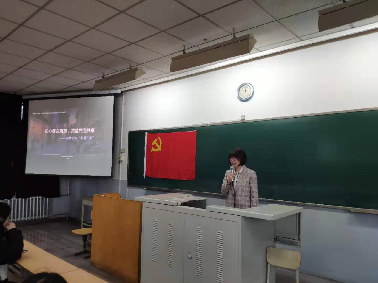 紧接着,建筑学建研18的管畅同学以“初心使命难忘,共建共治共享—唤醒繁华下的‘失落住区’”为题,介绍了她参与到百万庄小区共建共治共享制度的建设中去,与社区党员共同挖掘百万庄的独特文化的实践经历,加深了在座党员和积极分子对“如何发挥专业特色将抽象的理论指导转化为具象的实际操作”问题的思考,意识到研究生党员可以结合自身各项优势,近距离了解基层人民的切身需要。