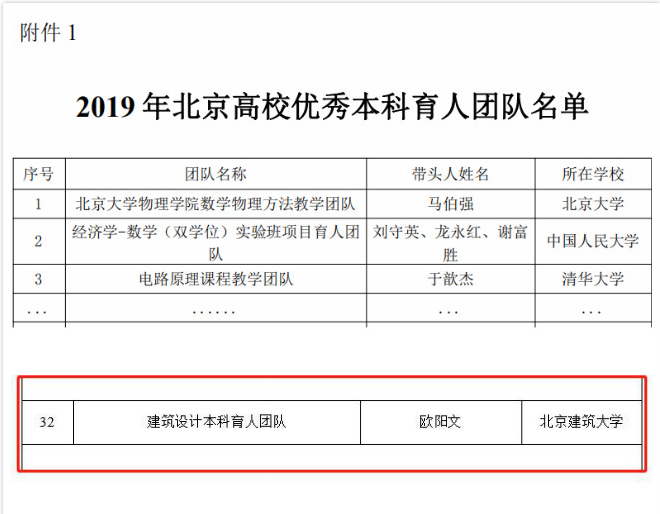 近日,北京市教委下发《北京市教育委员会关于公布2019年“北京高校优秀本科育人团队”和“北京高校优秀本科教学管理人员”评选结果的通知》京教函〔2019〕681号,斗地主游戏 “建筑设计本科育人团队”荣获2019年“北京高校优秀本科育人团队”。