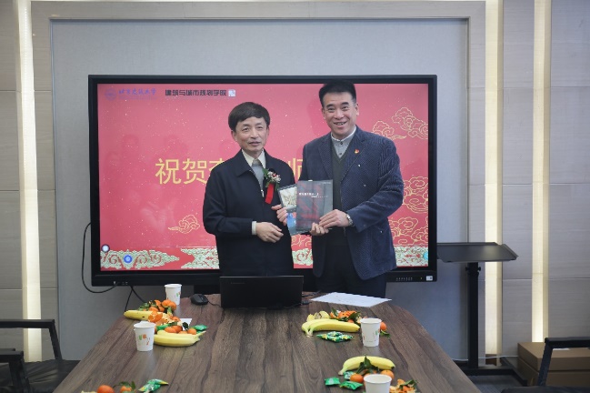 活动尾声,设计学系赵希岗、滕学荣为李沙教授送上精美的礼物,李沙教授也将自己的学术专著赠与学院。退休教师不仅是建筑学院的宝贵财富,更是一代代建院人不断开拓进取、积极创新的重要见证,对每一位退休教师的认可与尊重,以及持续的关怀,都将成为建筑学院历史与文化的重要组成部分。建筑学院也会将此类活动持续开展下去,用心关怀每一位在这里或曾在这里学习、工作、奋斗的师生。