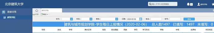 从建筑学院教师到学院团委学生会团学骨干,从生活权益部到各班团学干部,再到每一位建院学子,建筑学院学生每日的健康监控工作在有条不紊中顺利推进。通过分组监督,精细到人,确保对每人每日进行实时动态监控。