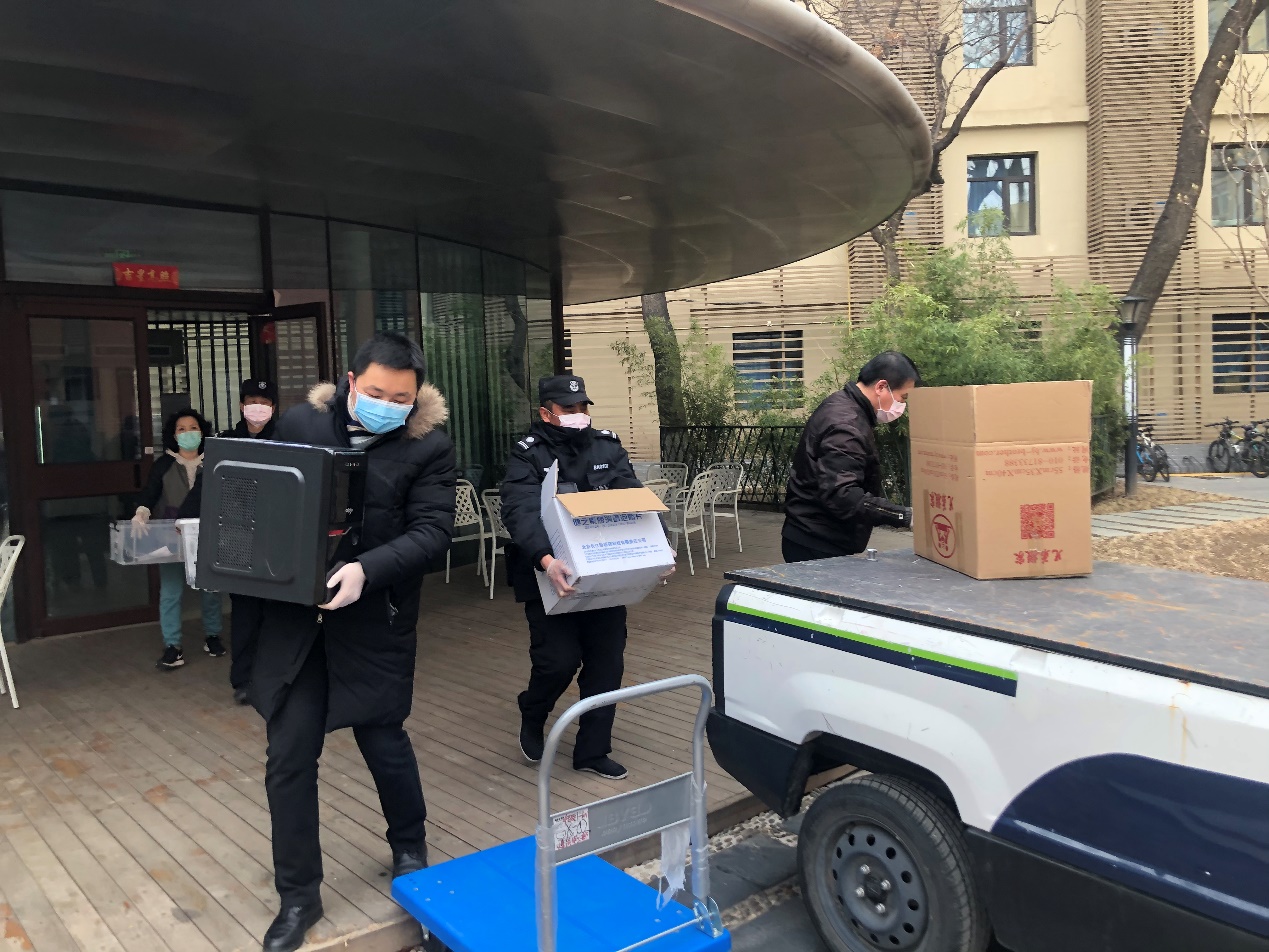 2月20日-22日,建筑学院党委书记何立新、党委副书记王秉楠带队,建筑学院全体辅导员、保卫处、资后处等多部门通力配合,前往西城校区2-6号宿舍楼、学生专用教室等地。建筑学院取物教师与每一位学生进行视频连线以便快速高效的帮助学生找到滞留物品、宿舍管理老师帮助开门并进行物品登记、保卫处工作人员帮助共同搬运物品并做好校门口人员疏导,避免人流聚集。3日中,建筑学院为近百名学生取出滞留在宿舍的重要证件、就业材料、笔记本电脑、台式电脑等学业、就业所需物品。并逐一为京内学生送至校门口,为10余名京外学生打包寄出,学生收到急需物品后纷纷表示为来自学校真切又温暖的关怀所感动过,并为老师们实际又高效的举措点赞!取物工作在保障防疫工作紧抓不懈的同时,切实考虑学生的实际学习需要,有效推动新学期开学工作顺利进行。