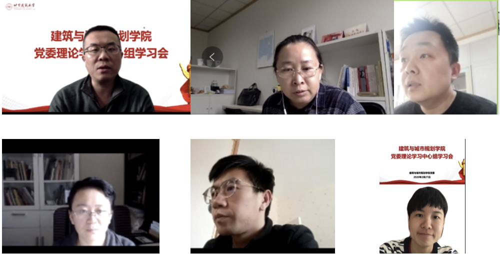 最后,何立新提出,2月23日习近平总书记的讲话和2月24日教育部的部署为教育系统打赢疫情防控人民战争、总体战、阻击战指明了方向、明确了路径、划定了重点。结合学院的工作,提出三点看法。一是,不卸“铠甲”,一鼓作气打好疫情防控阻击战。必须清醒看到,全国疫情发展“拐点”尚未到来,首都角色,意味着“首善标准”“首善要求”,要求我们必须在防控工作上不断自我施压、守土尽责。在最吃劲的关键阶段,更要时刻高度警惕麻痹思想、厌战情绪、侥幸心理、松劲心态,按照既定部署,时刻与我们的学生保持联系,严格严格再严格,确保无死角、无盲区、无漏洞。二是,弹好“钢琴”,两手齐抓夺取双胜利。我们要在抓好疫情防控的同时抓好在线教育教学工作。希望大家继续深入调研,了解老师们和同学们的需求和困难,我们要切实做好老师和同学们的后勤保障工作,为线上教学的开展提供全方位支持,真正把“延期不返校、延期不停教、延期不停学、延期不停研”落到实处。“线上”将为我们开展国际交流、拓展国际化视野提供无比便利的条件。希望大家带领我们老师研究并利用好当前的新理念、新技术,为学院迈向国际提供支持。三是,淬炼“内功”,抢抓机遇谋发展。这是一次危机,也是一次大考,我们要化危为机。今年是十三五收官之年,各项目标任务需要落地;也是十四五谋划之年,需要我们认真思考、科学谋划今后五年的发展目标。2020年学院的5件重点工作要积极推进和落地。越是在特殊时期,越要高标准严要求,共同助力建筑学院迈向更高的台阶。同时强调,领导干部要敢于担当作为,要为老师和同学们服好务,就是要在关键时刻靠得住,真正做一名为老师们、同学们负责,敢于担当作为的好干部。最后,何立新提出,建筑学院要围绕立德树人根本任务,响应新时代发展要求,系统梳理学院办学特色、办学定位,紧紧围绕国家战略和首都北京发展需求,聚焦内涵发展和特色发展,切实发挥学院在学校发展的龙头示范效应,进一步推进建成“国内一流、国际知名”的有特色、高水平建筑学院。