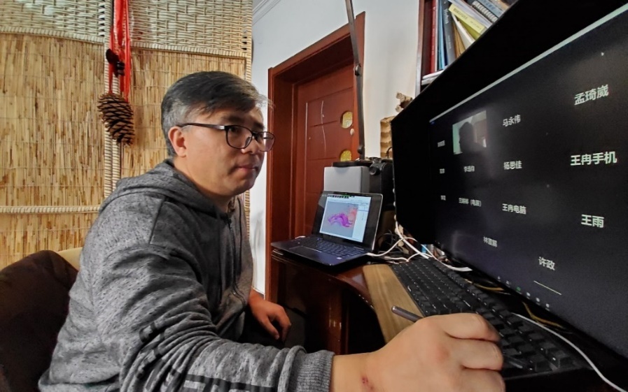 毕业设计的实践性很强,采用网络视频的方式授课,对每位老师来讲都是一次巨大的挑战。教务处专门为老师们准备了电脑手绘板,方便改图教学和互动交流。