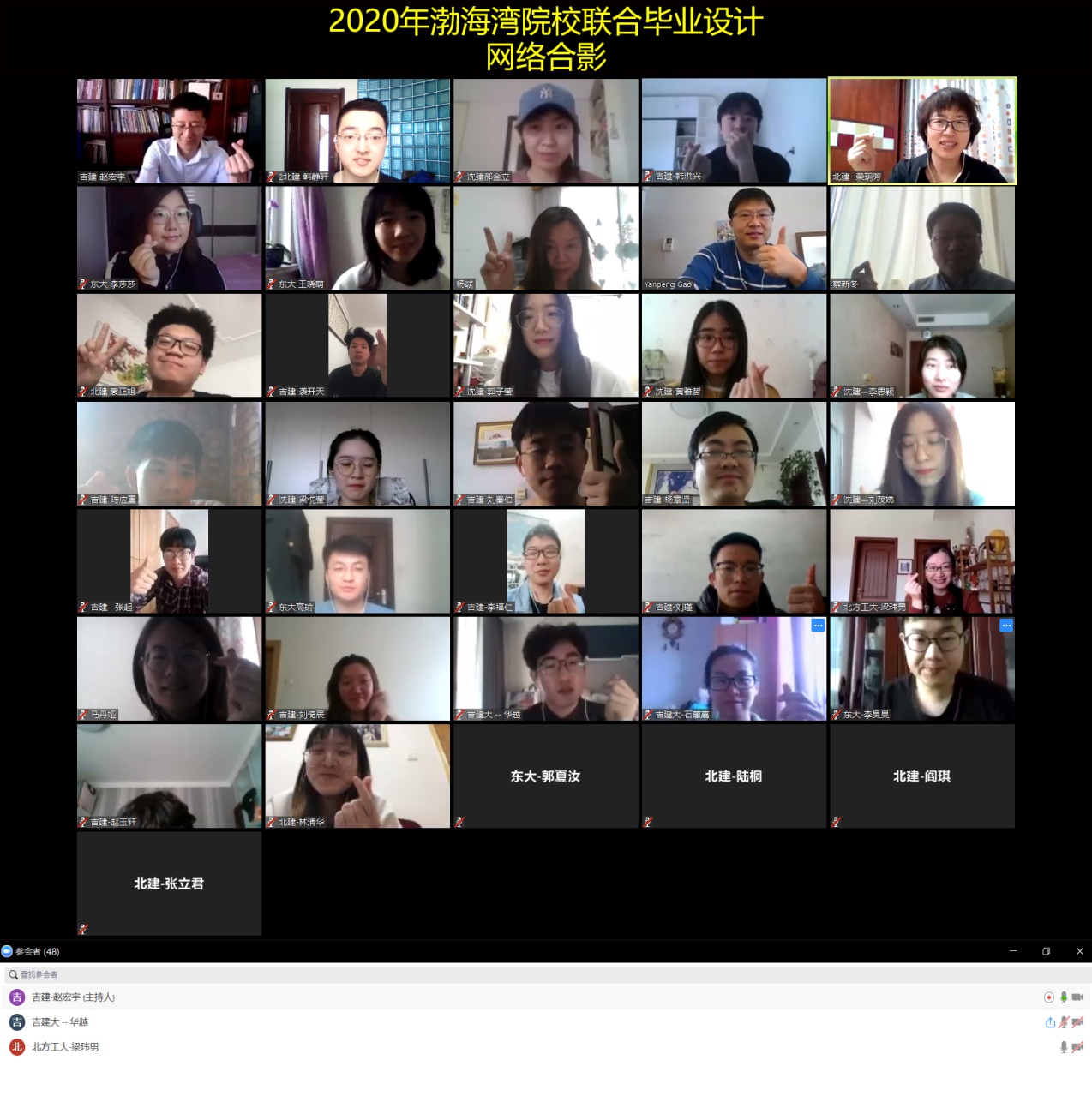 2月28日下午,2020年城乡规划专业渤海湾院校联合毕业设计在“抗疫”期间如期召开。来自渤海湾地区的5所院校(北京建筑大学、北方工业大学、东北大学、吉林建筑大学、沈阳建筑大学)共四十余名师生齐聚网络会议室,在承办方吉林建筑大学的精心组织下,通过网络视频的方式围绕“疫情防控”期间毕业设计的场地调研、资料收集、沟通联系平台等问题进行了深入的交流探讨。