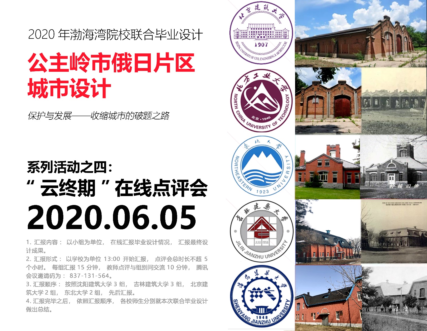6月5日,2020年城乡规划专业渤海湾院校联合毕业设计进入到了最后的阶段——终期汇报。由吉林建筑大学赵宏宇老师主持,参加会议师生40余人,以小组为单位,在线汇报毕业设计的完成情况,展示设计成果。