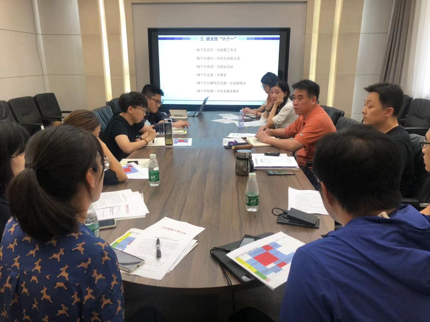 首先,王秉楠副书记对本科生班主任的岗位职责、聘任管理、“一个月、六个一”工作方案等进行了详实的介绍。随后,何立新书记做了总结讲话,他强调班主任要在新生入校时做好学生专业学习的启蒙、引导学生树立正确的价值观、提醒学生养成良好的学习生活习惯、培育学生优秀的人格。做好新生的引路人,成就学生成长成才。