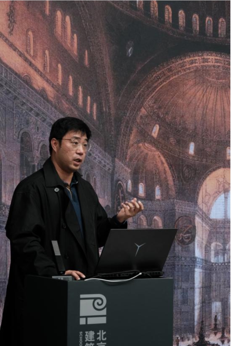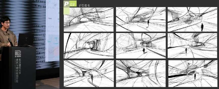 北京建筑大学徐跃家副教授进行主题演讲,题目是:《从ai到具身智能建筑创新的前沿技术视角》。他强调了建筑创新与技术发展的紧密关系,指出技术不仅是设计驱动力,也是实现美学追求的重要支撑。设计教育中常忽视这一点。AI的强大能力体现在处理复杂数据和展现“想象力”及“看待事物的方式”,使得AI在设计领域的应用前景广阔。徐副教授列举了AI与建筑设计的结合案例,如参数化设计、AI辅助早期出图和数字建造等,并特别强调了“具身智能”的概念。最后,他以一个工业建筑场景中的消防机器人系统为例,展示了AI技术在空间设计和行为模式挖掘中的实际应用。