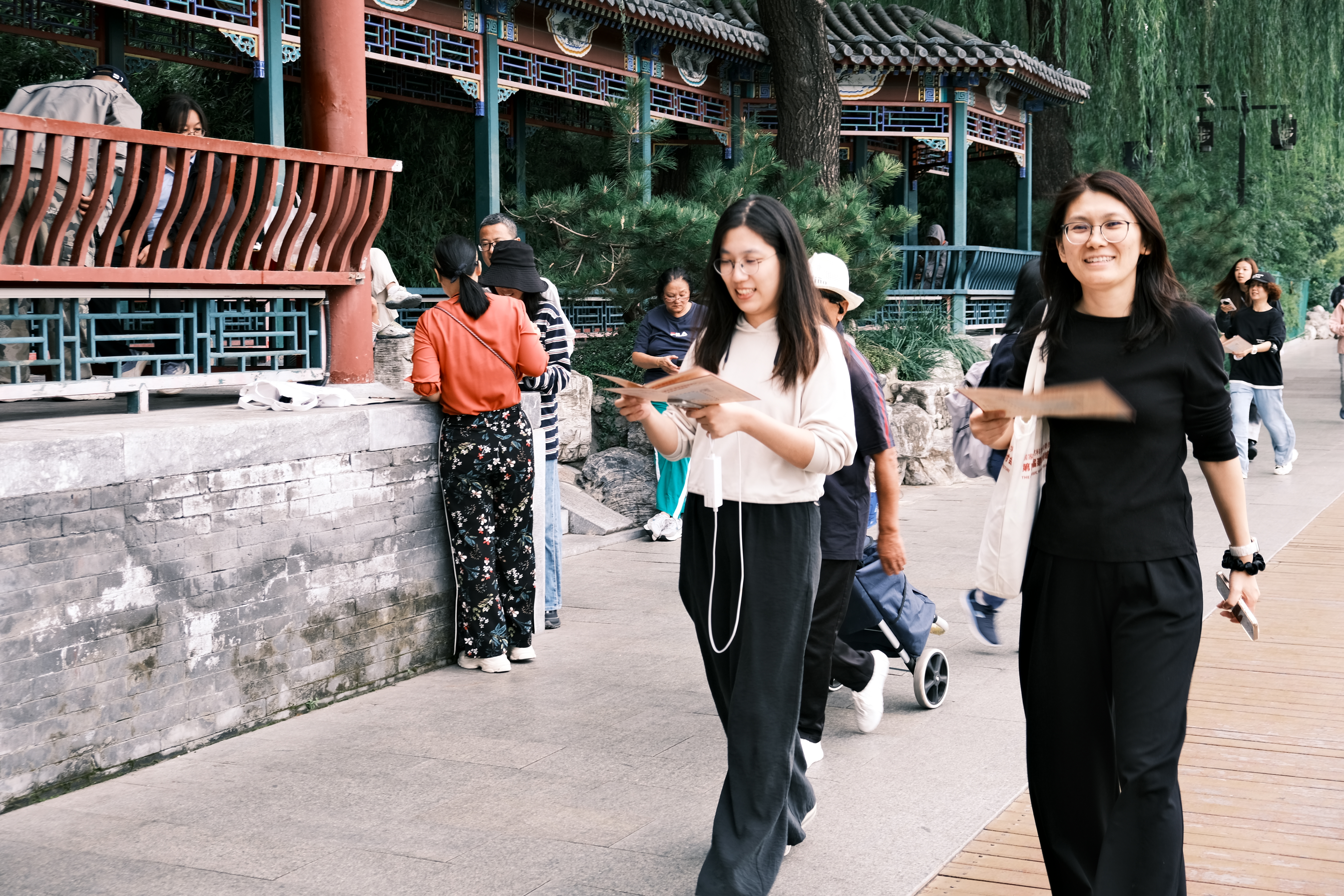 秋高气爽,西海湿地公园景色如画。活动中特别设置了9个融合自然与人文的特色打卡点,包括历史悠久的单孔石桥、清雅别致的渌水亭、意境优美的碧荷轩以及具有深厚文化底蕴的郭守敬纪念馆和乾隆诗碑等。参与活动的教职工们手持精心设计的集印卡片,沿着预定路线健步前行,在锻炼身体的同时,也领略了公园内丰富的人文景观。在每个打卡点,大家不仅能够收集独具特色的主题印章,还能驻足参观,了解相关历史文化背景,感受自然与人文的和谐共生。