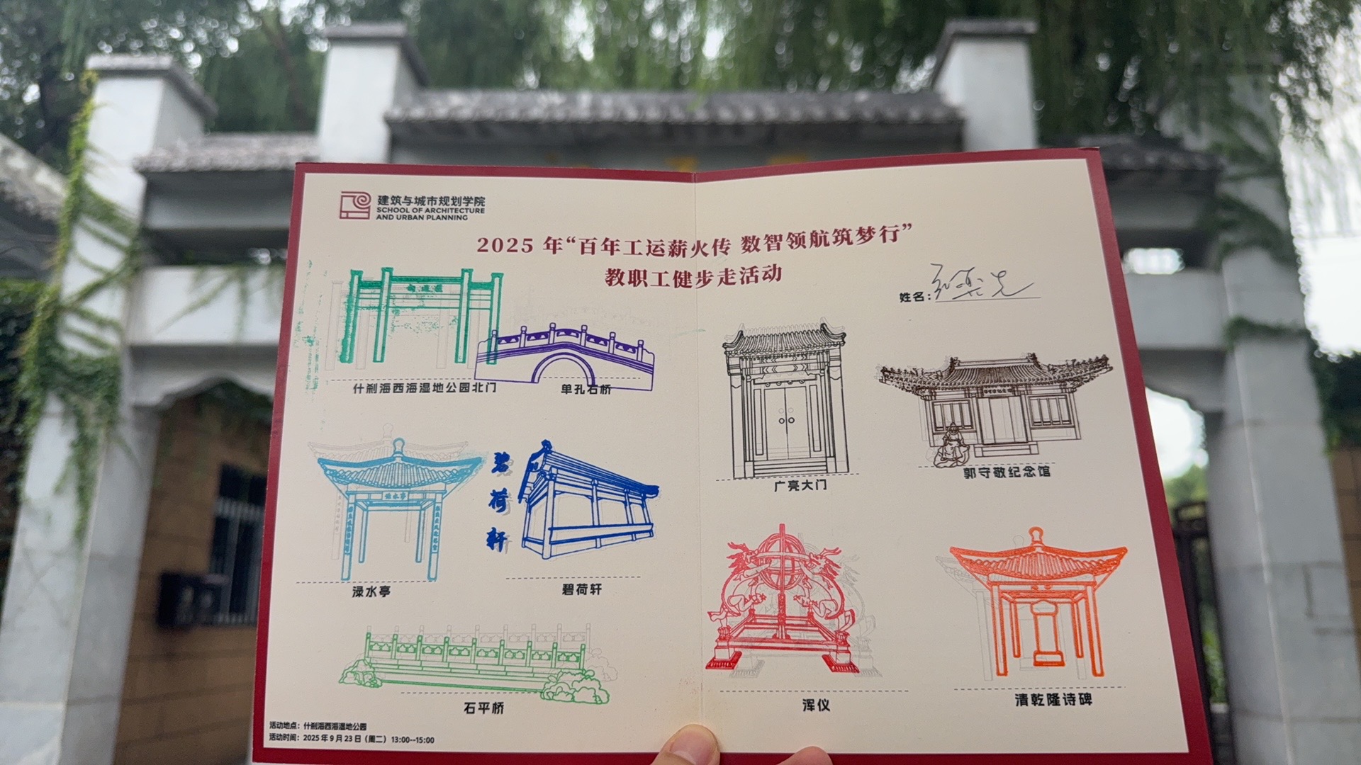 为深入贯彻全民健身理念,积极响应学校关于加强教职工身心健康的号召,丰富教职工文化生活,吸引更多的师生参与体育运动,建筑学院分工会于2025年9月23日下午,在风景宜人的什刹海西海湿地公园成功举办“百年工运薪火传 数智领航筑梦行”全体教职工健步走活动。此次活动旨在通过户外运动促进教职工身心健康发展,增强团队凝聚力,营造积极向上、充满活力的校园体育文化氛围,同时也为教职工提供了一个亲近自然、放松身心的良好机会。